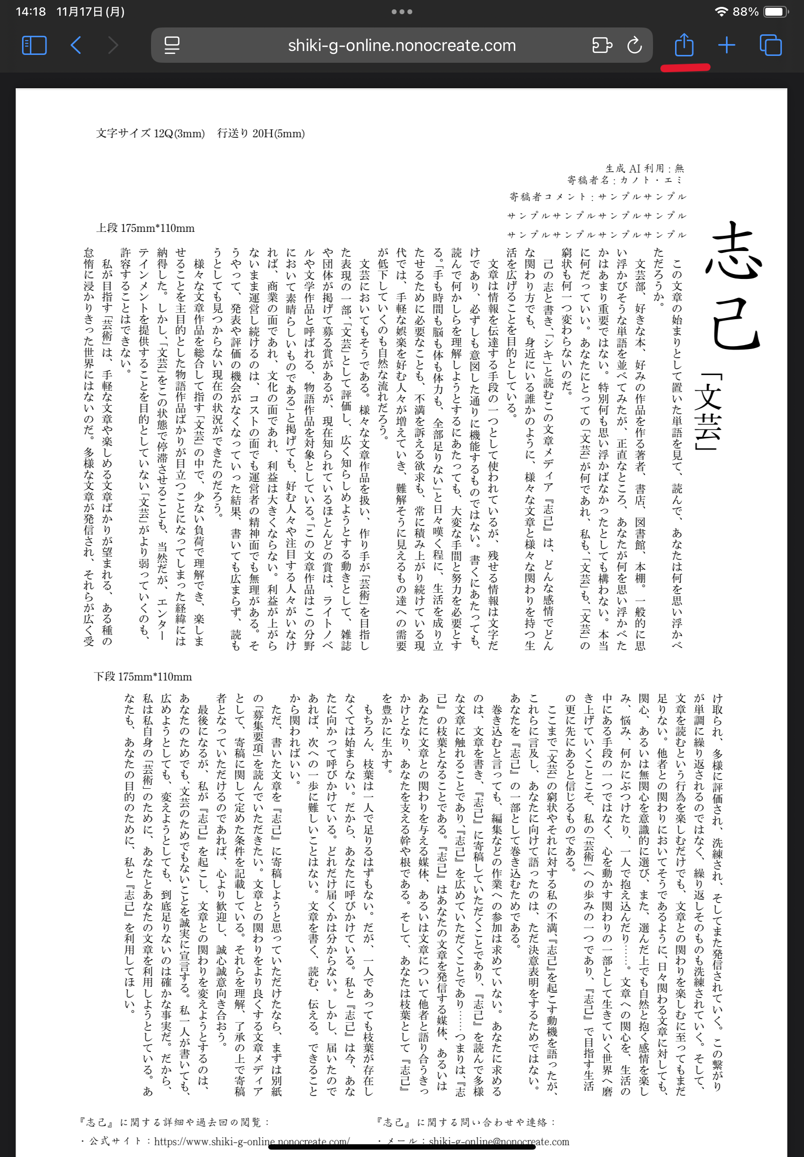 ※『志己』は白黒での印刷を想定しており、画像もつけていないので、大きな差はないと思われます。